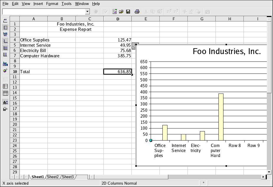 From large enterprises to home offices, professionals in every industry use spreadsheets for keeping records, creating business charts, and manipulating data. OpenOffice.org Calc is a software spreadsheet application that allows you to enter and manipulate data cells organized in columns and rows. A cell is a container for individual pieces of data, such as a quantity, label, or mathematical formula. You can perform calculations on groups of cells (such as adding or subtracting a column of cells) or create charts based on the quantities contained in a group of cells. You can even incorporate spreadsheet data into your documents for a professional touch.