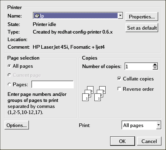 Also located on the Panel is a Print Manager icon. To print a file from Nautilus, browse to the location of the file and drag and drop it on to the Print Manager icon on the Panel. The window shown in Figure 36-16 is displayed. Click OK to start printing the file.
