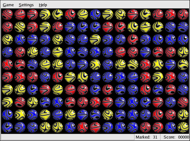To start a game, click Main Menu => Games and select the game of your choice. Figure 8-7 shows a fun game for kids of all ages called Same GNOME. In this game you point your mouse at matching marbles until they start to spin; then, you can click them to make them disappear. The object of the game is to make all the marbles disappear.